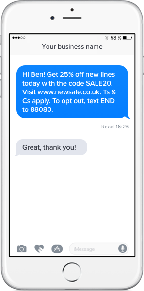 Send your contacts personalised messages about new products, events and sales. You can also add image and PDF attachments and create automated responses, saving you valuable time whilst improving your customer's experience.